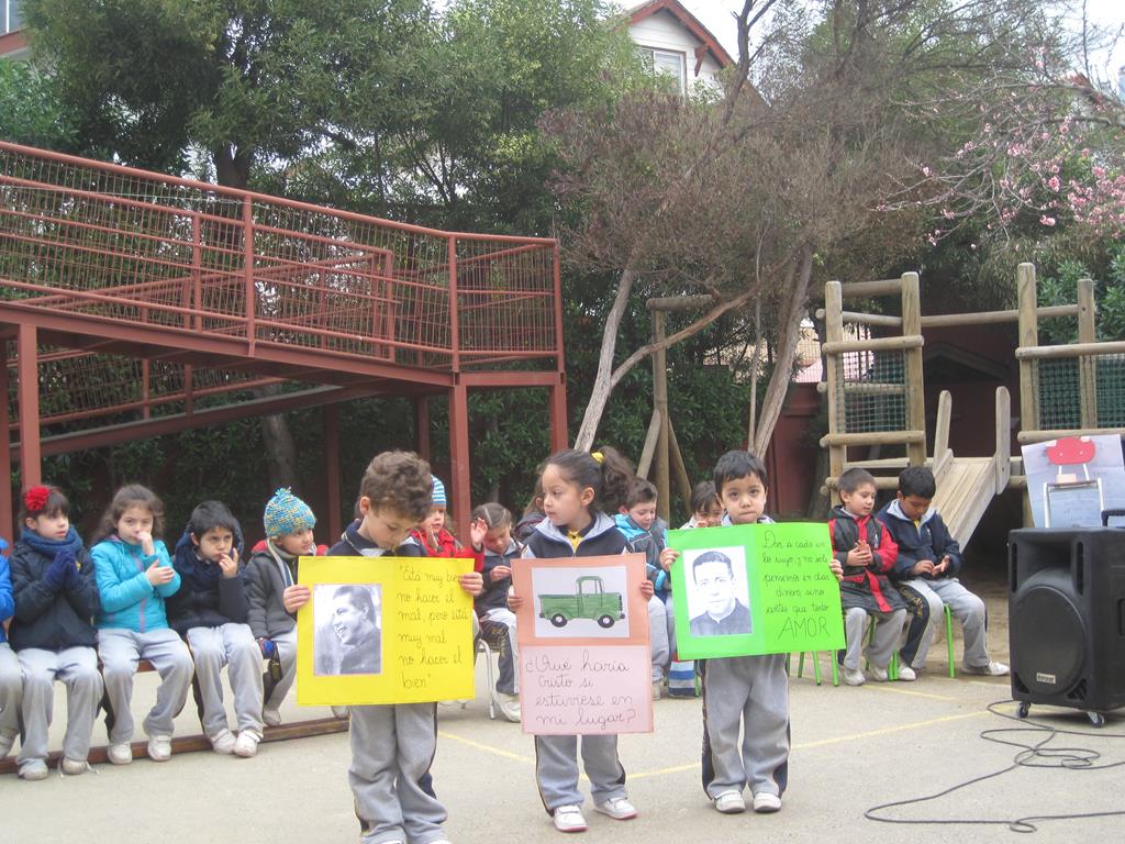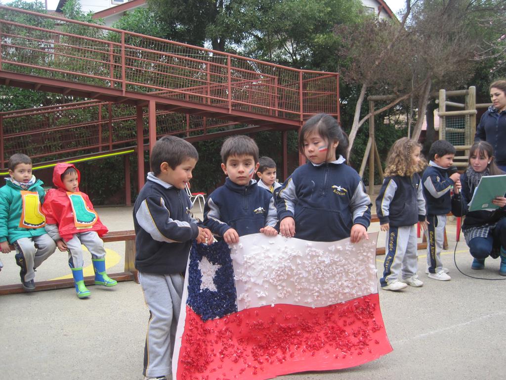 En el mes de julio, el Playgroup Green Afternoon recordó el Día de la Bandera, con una poesía que recitaron dos niños acompañados de la bandera chilena realizada por el nivel, finalizando con un grito a nuestro país Chile. También recordaron el inicio de las vacaciones de invierno presentando en inglés una canción y baile; “Splish, splash, splosh” en alusión a esta fecha. El un tema alusivo a esta estación del año. El Pre Kinder Green Morning nos recordó dos hechos históricos, el nacimiento de Pablo Neruda y la llegada del hombre a la luna. Para conmemorar ambas fechas los niños del curso se caracterizaron y realizaron una pequeña dramatización.