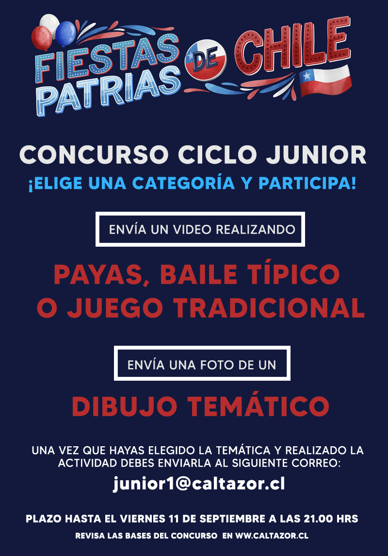 Querida Familia Altazorina, con motivo de la celebración de Fiestas Patrias, nuestro Colegio Altazor y en específico el Ciclo Junior, ha organizado un concurso que tiene como objetivo incentivar y abrir un nuevo espacio de expresión para nuestros estudiantes, logrando demostrar sus habilidades artísticas, desarrollando su imaginación, creatividad y a su vez incentivar el amor a su Patria.