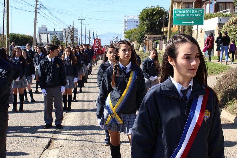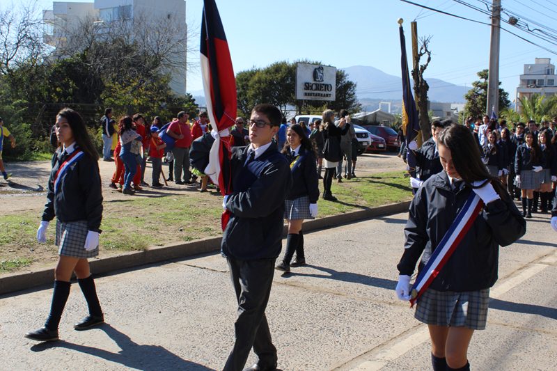 El pasado sábado 20 de mayo, se desarrolló el tradicional desfile en honor a las Glorias Navales, hito que recuerda la heroica gesta de Arturo Prat en el contexto de la Guerra del Pacífico. En el evento, organizado por la Ilustre Municipalidad de Concón, el Colegio Altazor estuvo representado con gran entusiasmo por una cincuentena de estudiantes de enseñanza media y sus respectivos abanderados, porta estandartes y escoltas oficiales. Así mismo, se contó con la participación de la plana dirigencial del CEAL y la compañía de las misses Fabiola Cancino Novoa, Patricia Camus Flores y Leila Lazcano Hansen.