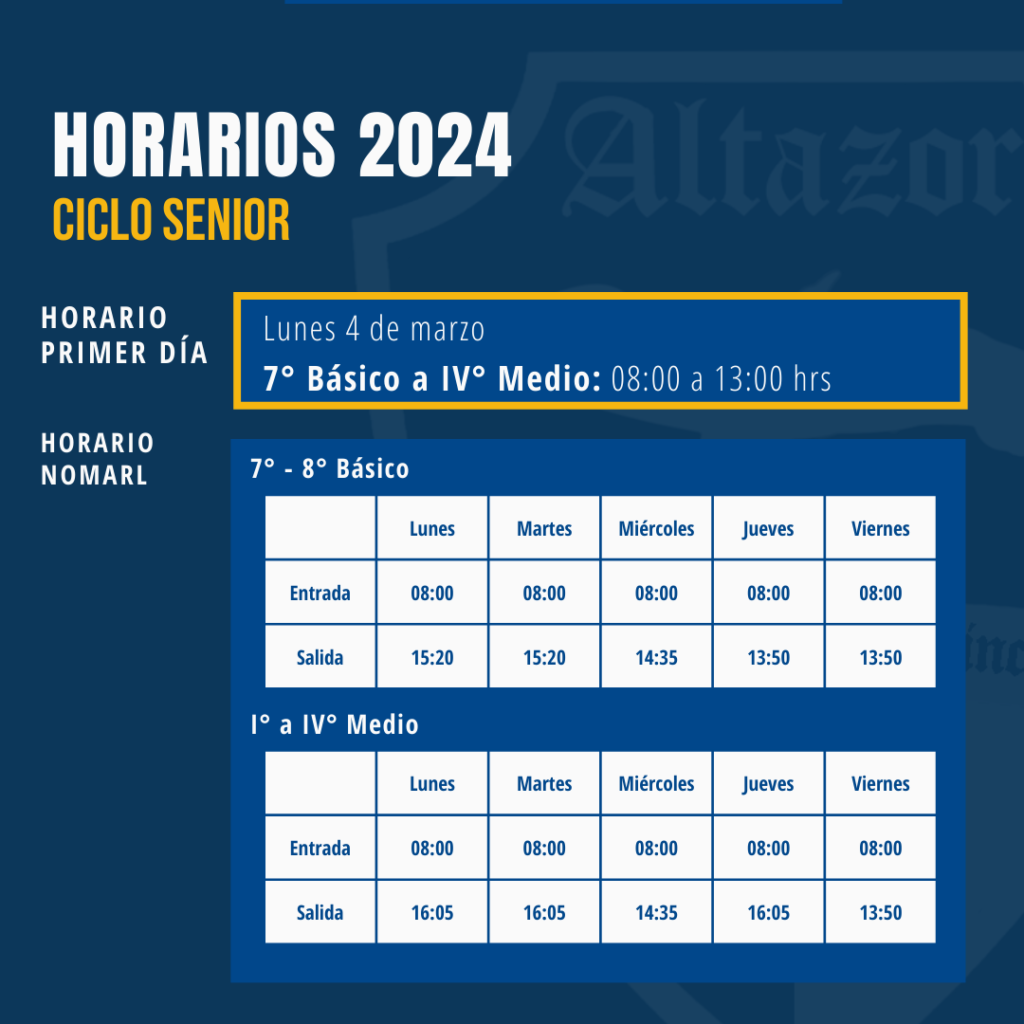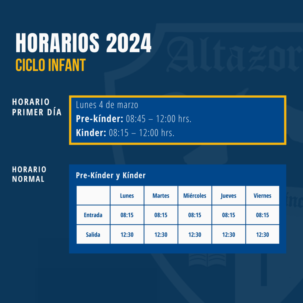 Les compartimos información respecto a los horarios de entrada y salida de los ciclos para el primer día de clases y el horario oficial para el resto del año escolar.