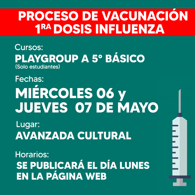 A continuación, adjuntamos la información sobre el proceso de vacunación de la primera dosis contra la influenza. Este proceso es exclusivamente para los y las estudiantes de los ciclos infant y junior.