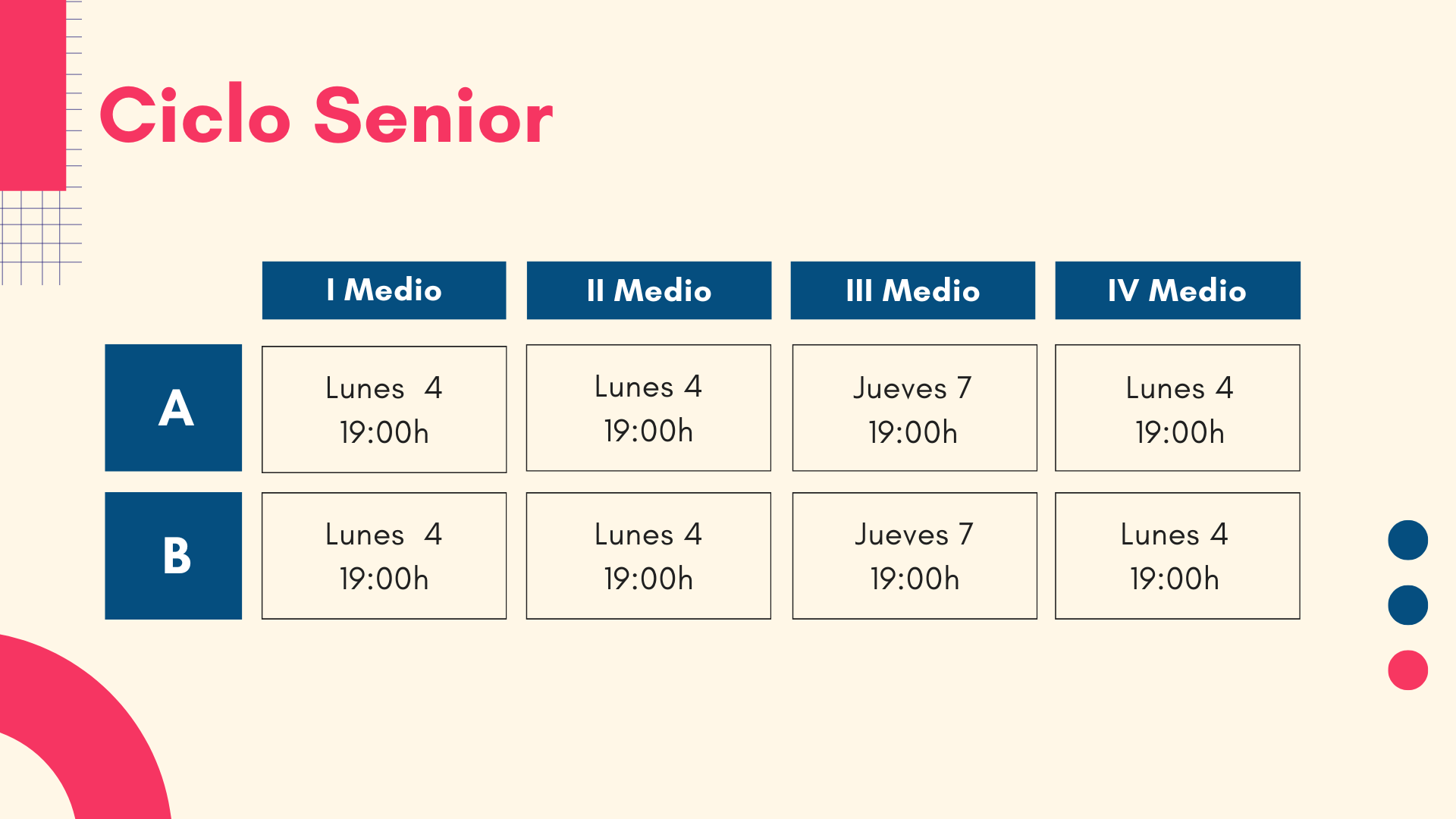 Queridas Familias: La próxima semana se realizarán las primeras reuniones de apoderados/as del segundo semestre de los Ciclos Junior, Middle y Senior.