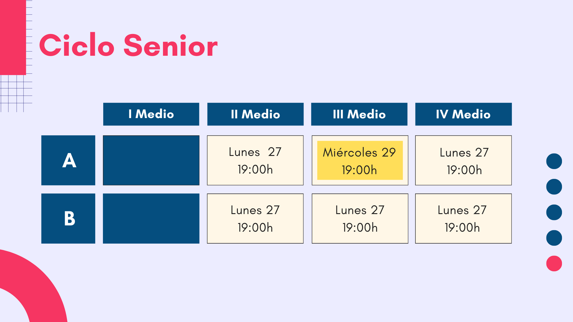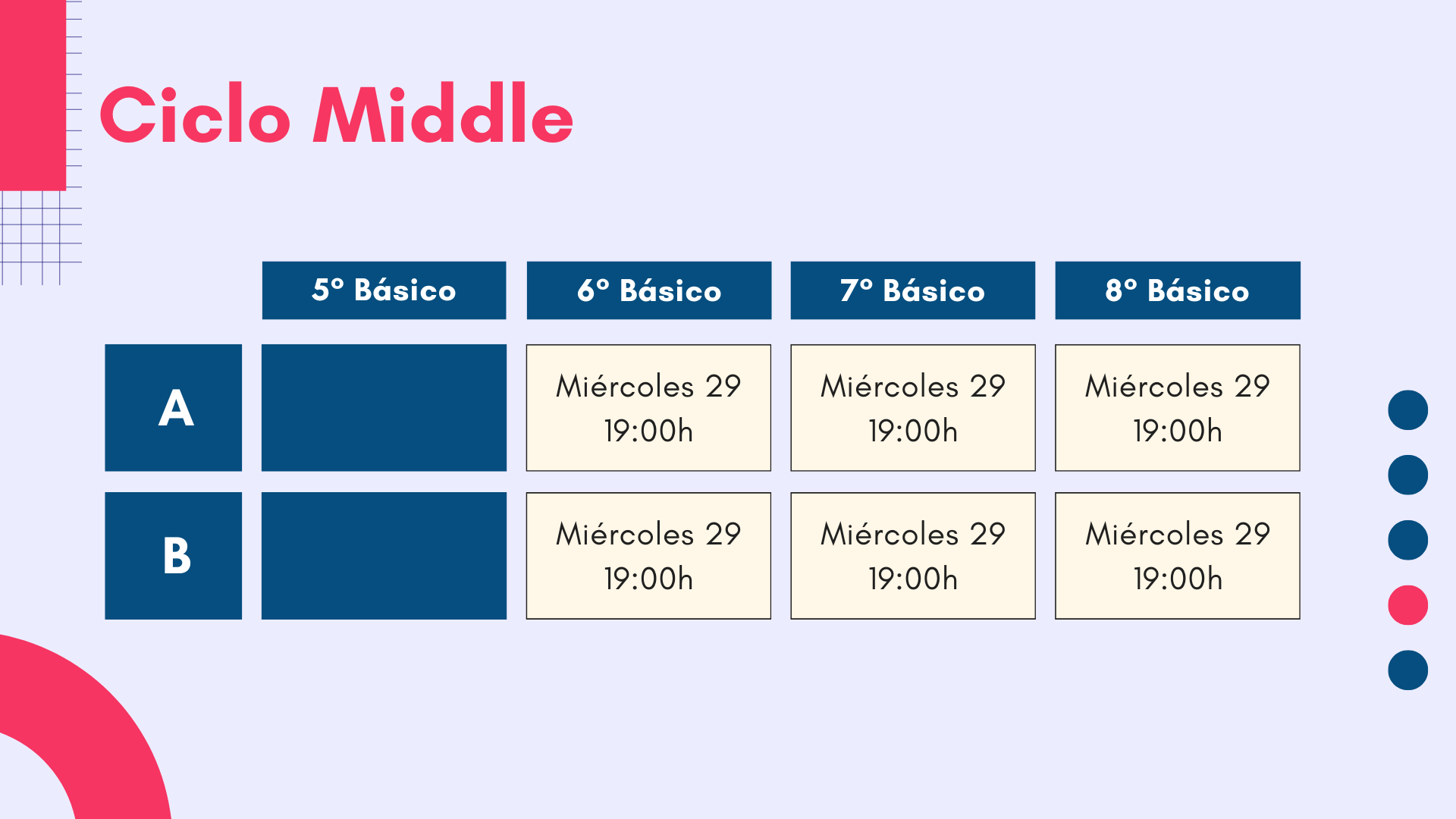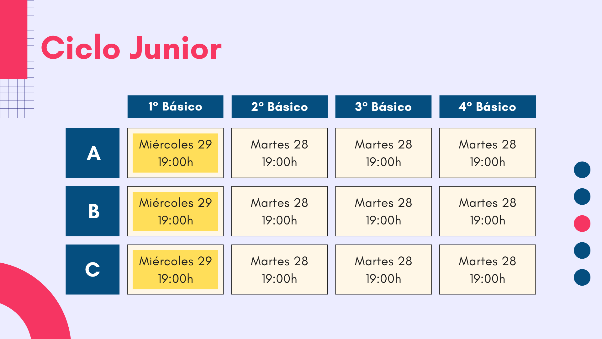 Queridas Familias: La próxima semana, se realizarán las primeras reuniones de apoderados/as. Todas las reuniones serán en las sedes y salas respectivas.