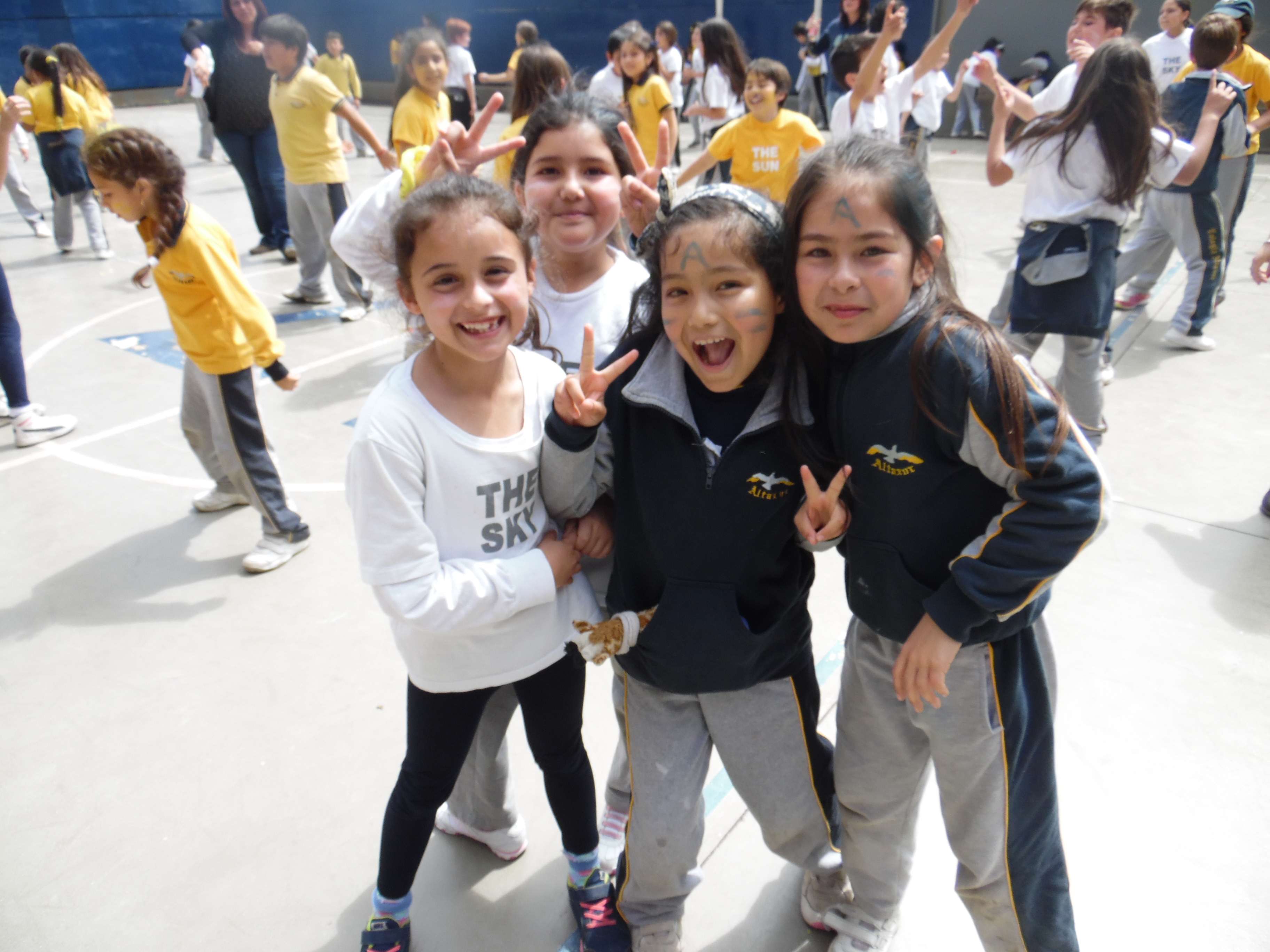 De amarillo, azul y blanco se cubrieron las graderías de la cancha Junior en este 14º aniversario de nuestro Colegio Altazor. Los niños del ciclo Junior pudieron disfrutar de muchas actividades recreativas y deportivas, durante los tres días de aniversario. Gymcanas, bailes, sillas musicales, carreras del saber, competencias deportivas, entre otros permitieron a los Altazorinos del Junior, vivir con Perseverancia, Justicia y Honor esta nueva celebración.
