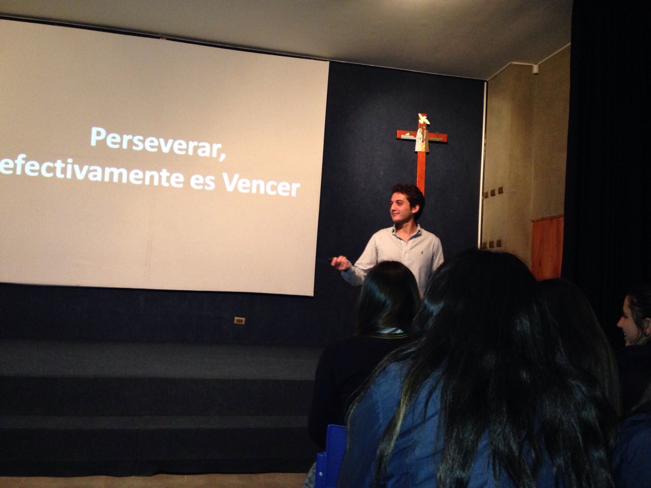En su presentación al grupo de estudiantes de Filosofía, Economía y Emprendimiento de Tercero Medio, nos habló de la vida Universitaria, de su incursión en política y de su emprendimiento www.tudestino.cl el que está desarrollando junto a otros exalumnos.