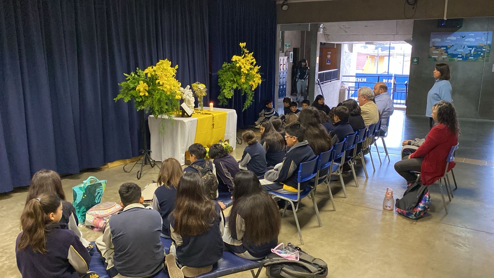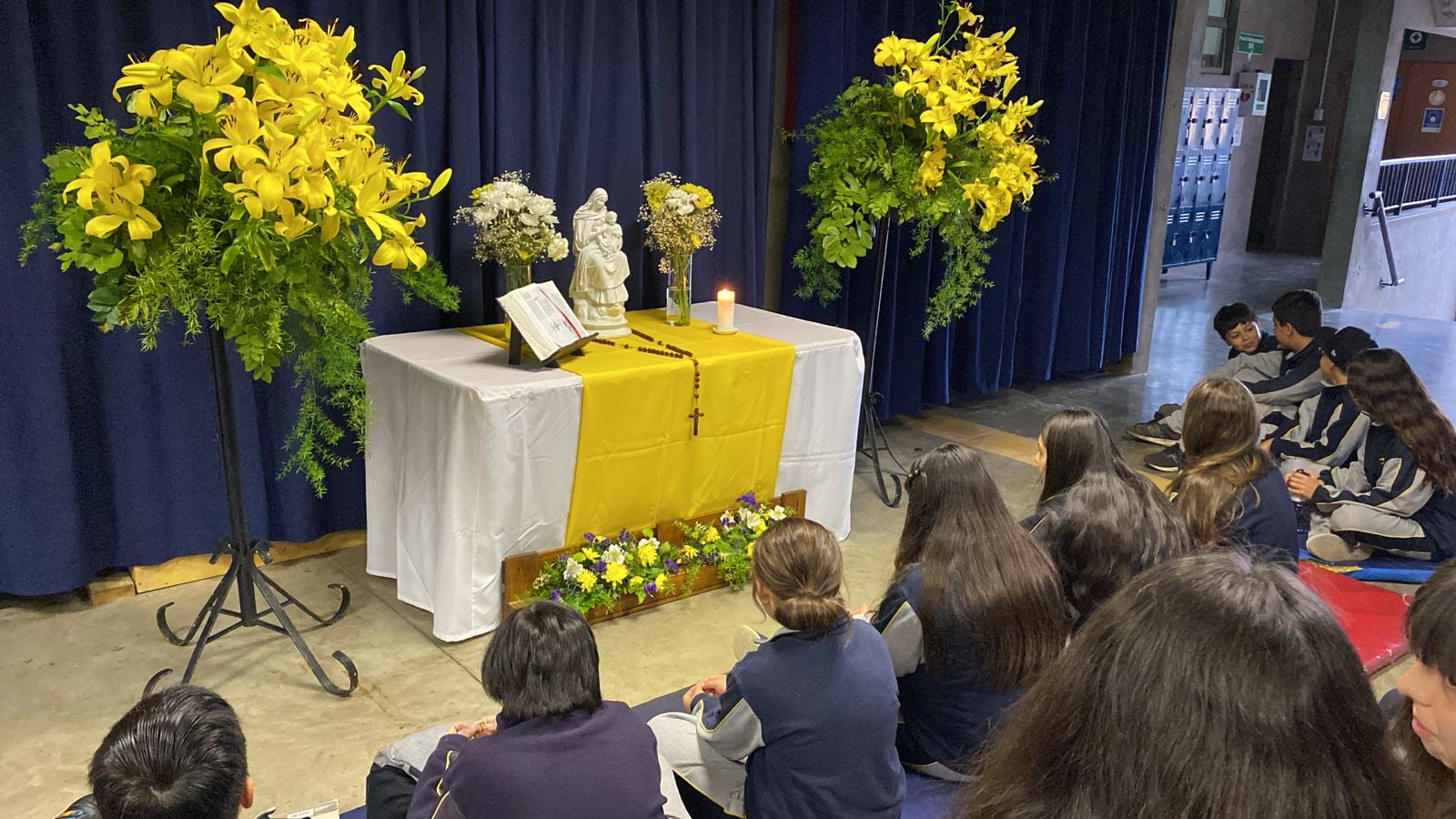 En el marco de la devoción mariana, el viernes 24 de noviembre nos reunimos como comunidad educativa pastoral para rezar el Santo Rosario. Dicha celebración tuvo como objetivo unirnos fraternalmente y poner en manos de María Santísima nuestras necesidades personales y también comunitarias. En esta ocasión contamos con la presencia de alumnos de middle, apoderados, profesores y cuerpo auxiliar.