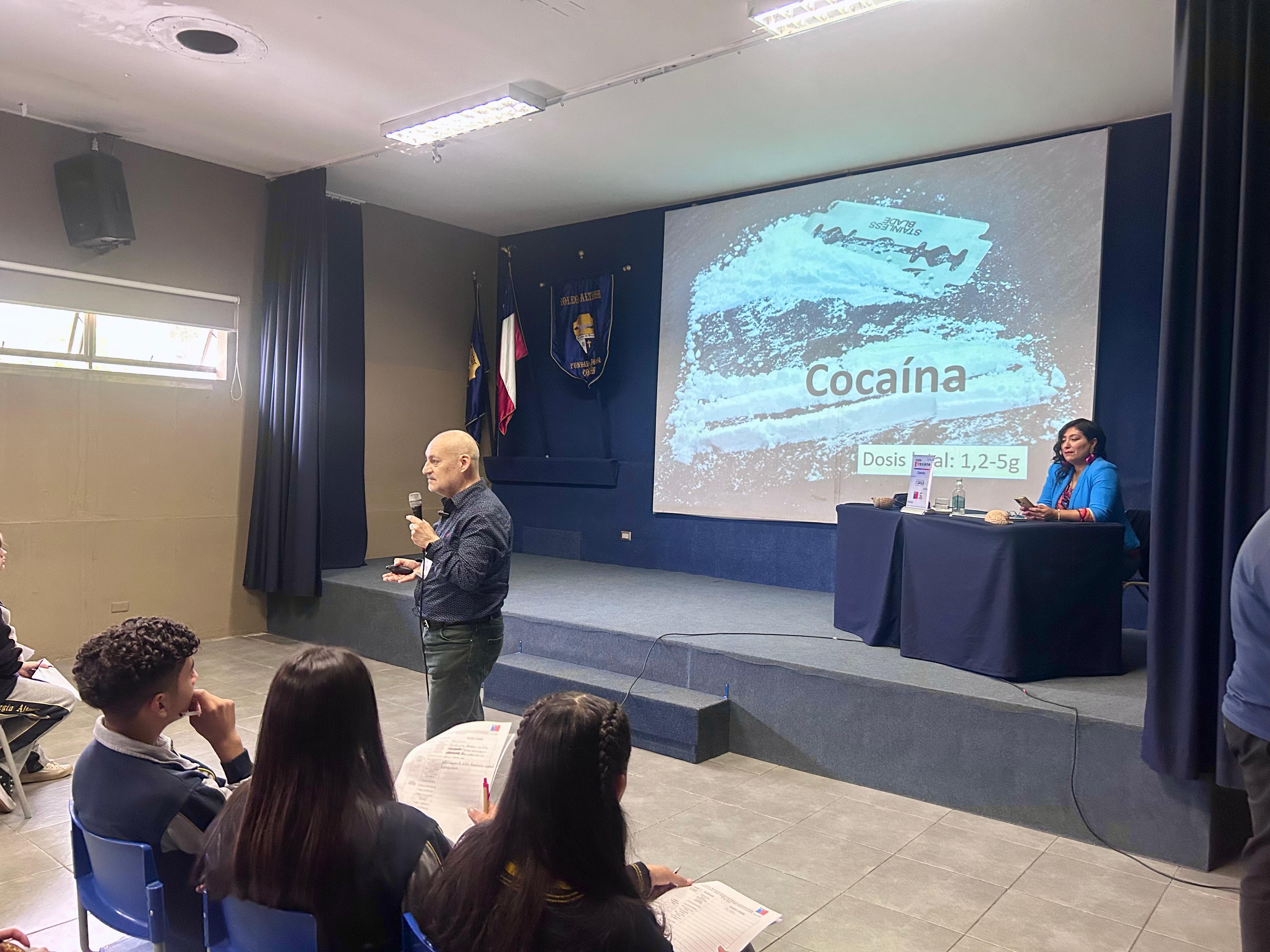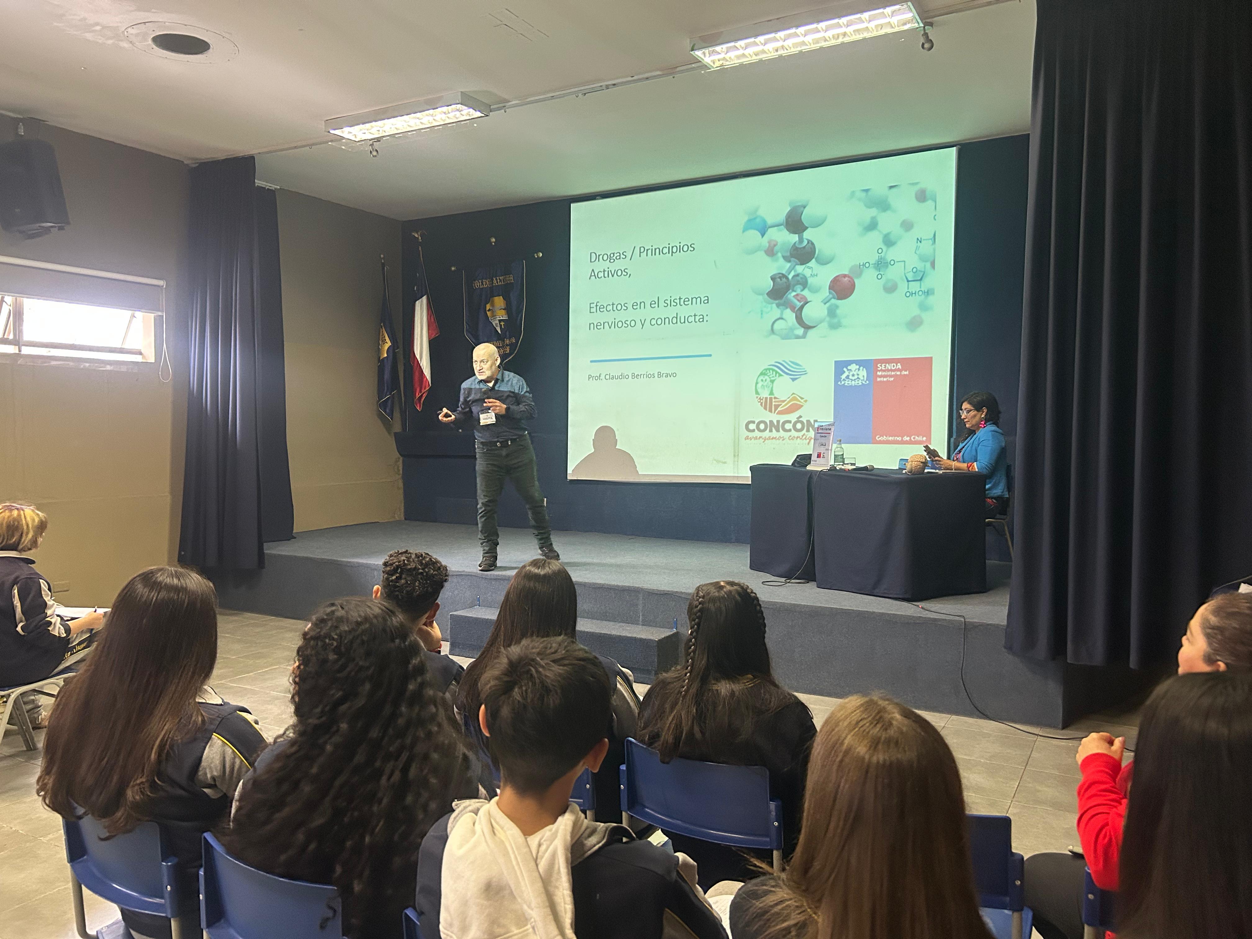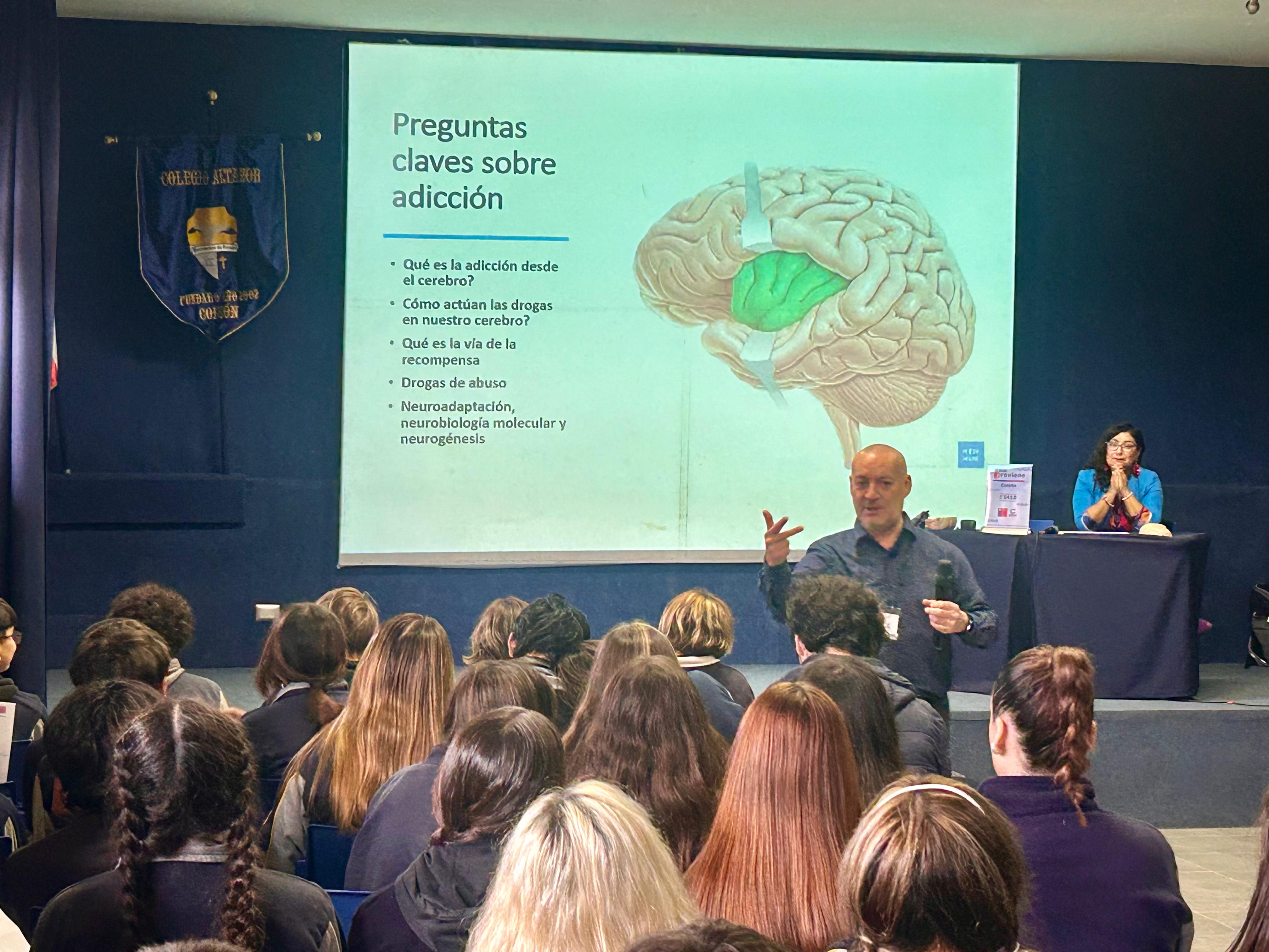 Con el objetivo de fortalecer la prevención del consumo de drogas y alcohol, recibimos la visita del académico Claudio Berríos Bravo, Magíster en Neurobiología y Ciencias de la Conducta de la Universidad de Chile y especializado en la Universidad Autónoma de España, quien compartió con nuestros estudiantes la charla: “Desarrollo neurobiológico y su relación con el consumo de sustancias”.