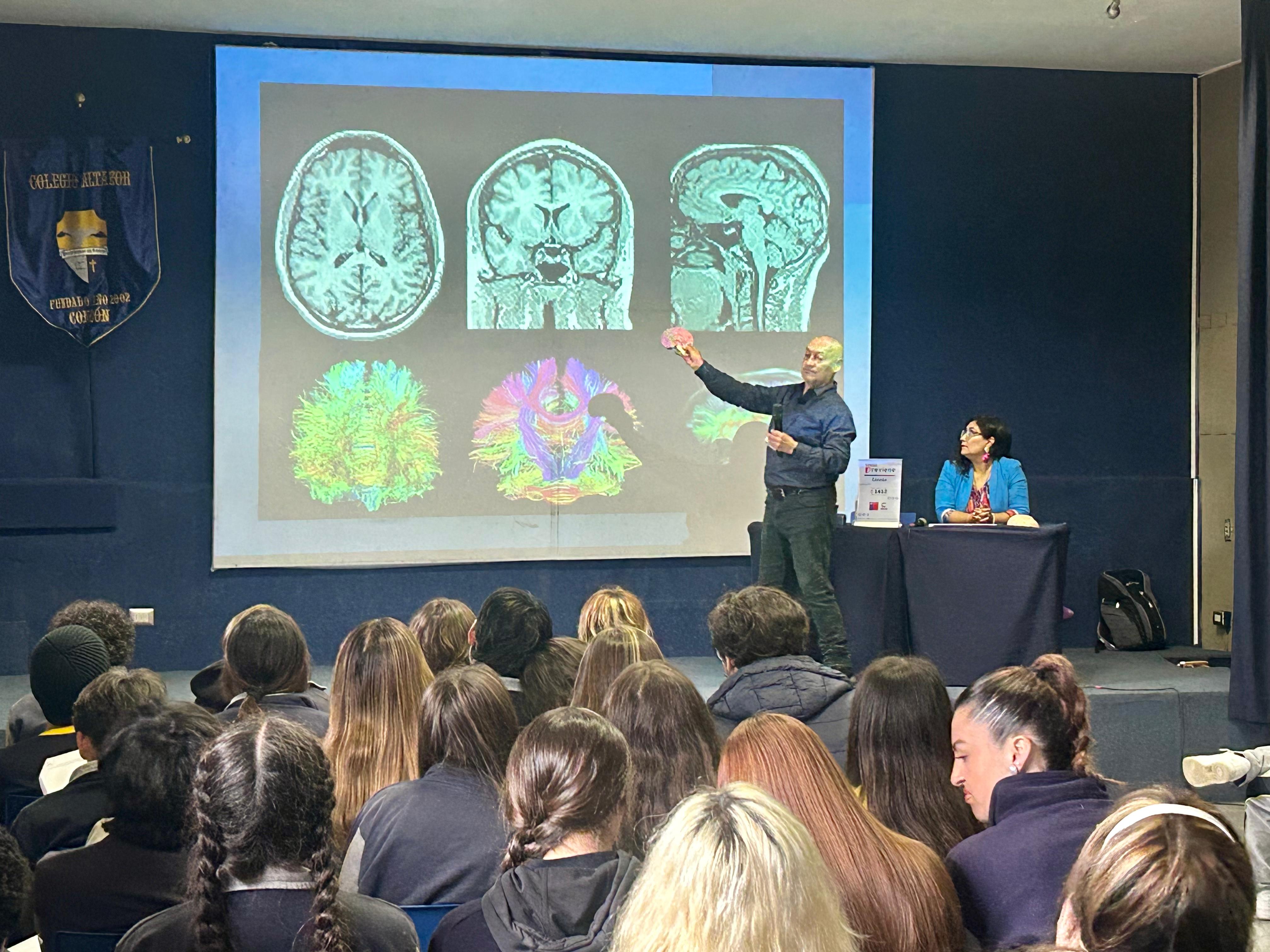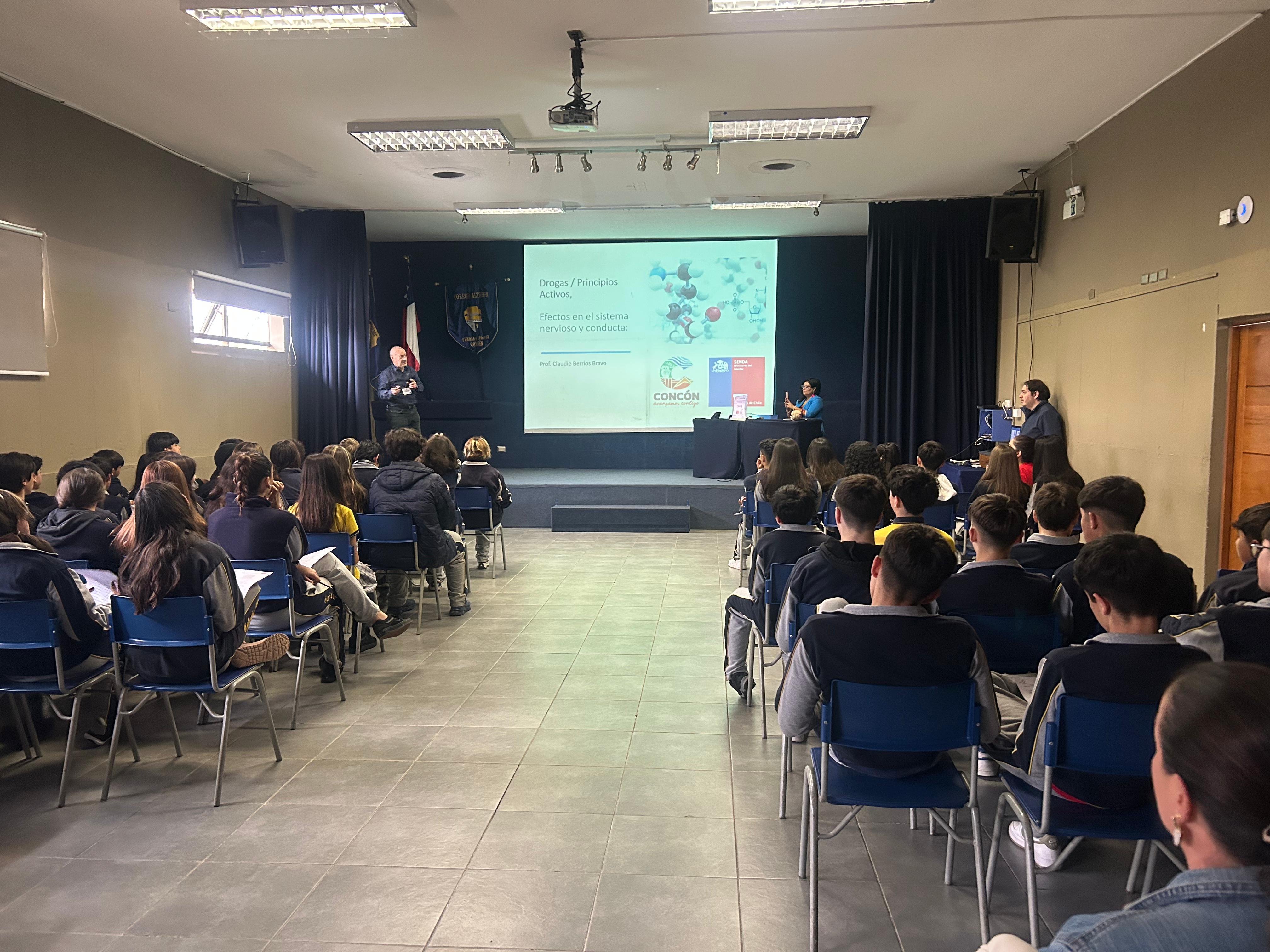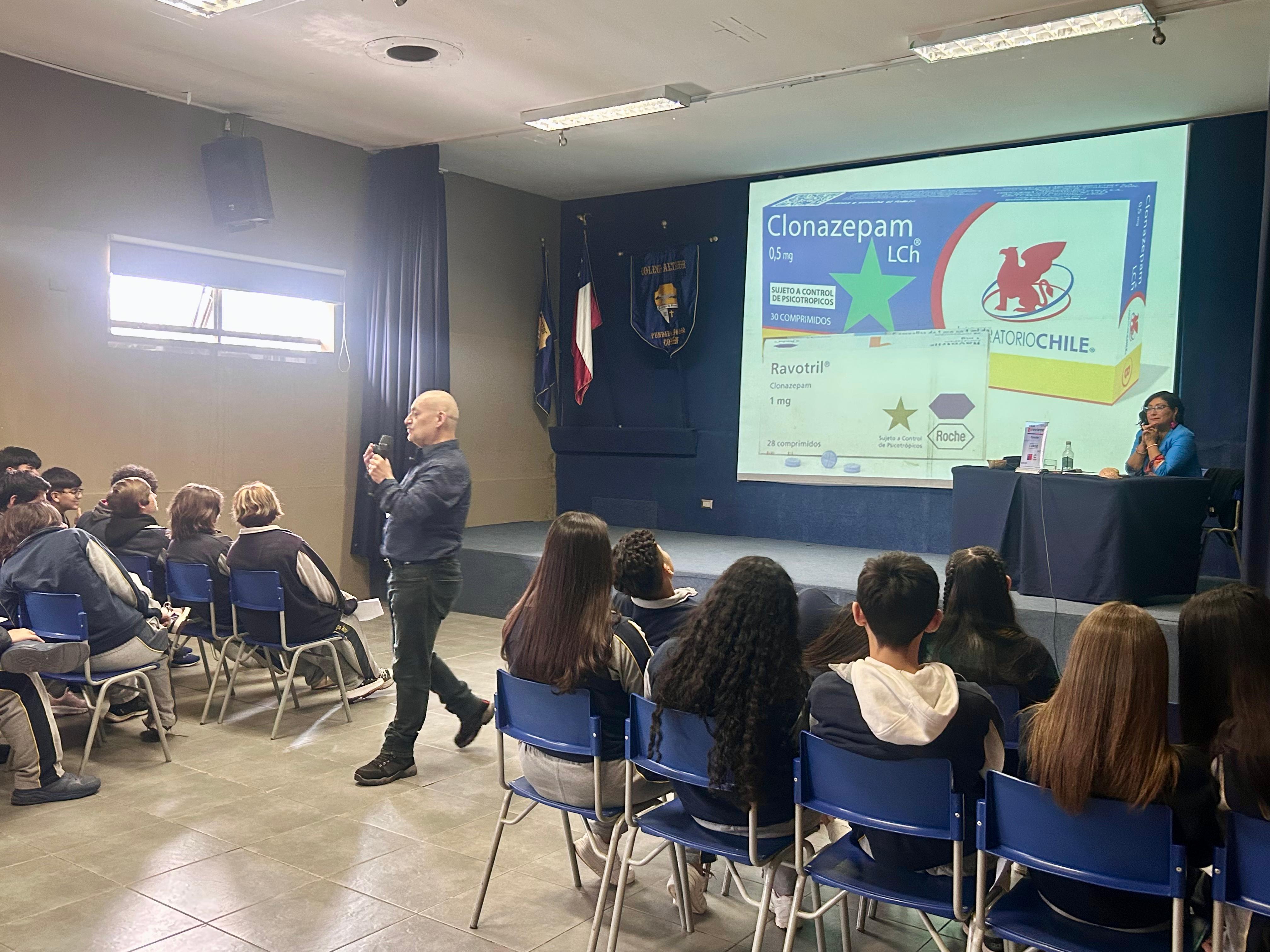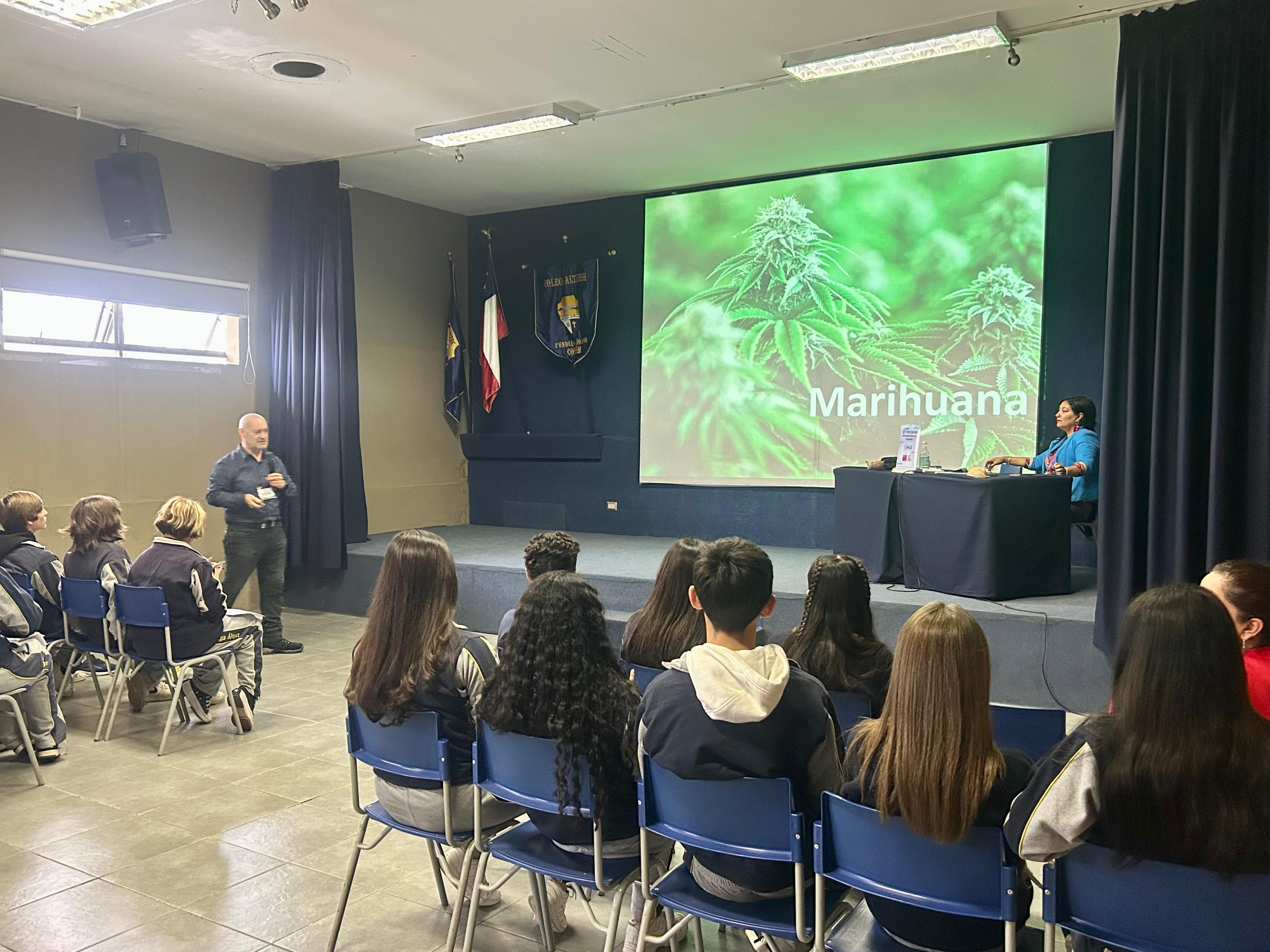 Con el objetivo de fortalecer la prevención del consumo de drogas y alcohol, recibimos la visita del académico Claudio Berríos Bravo, Magíster en Neurobiología y Ciencias de la Conducta de la Universidad de Chile y especializado en la Universidad Autónoma de España, quien compartió con nuestros estudiantes la charla: “Desarrollo neurobiológico y su relación con el consumo de sustancias”.